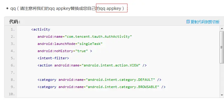 PlatformConfig.setQQZone("11074610", "frEHNKoKtZkZK")第五步就是复制代码,这里有几个坑