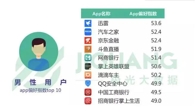 其二,从用户群体画像出发,在运营平台和赛事的同时玩转粉丝运营。例如极光大数据显示,全网男性用户对斗鱼直播的偏好指数颇高,排到最受青睐的APP榜单第四位,正是对用户群体的深刻洞察,斗鱼的整体运营不论在游戏板块设置、还是主播特色上,也都突出了“为男人们开道”的特点。