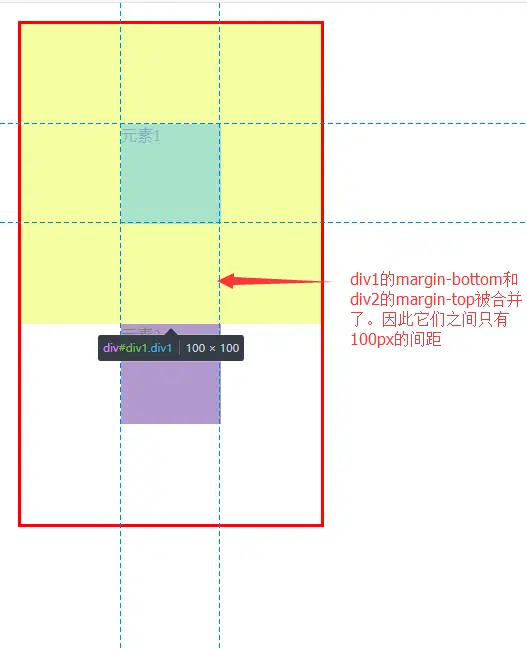 这就是BFC中经常发生的边距重叠的情况。而且重叠的情况会根据重叠的块级盒子的margin值有关,在这里即:div1的margin-bottom和div2的margin-top值有关系。