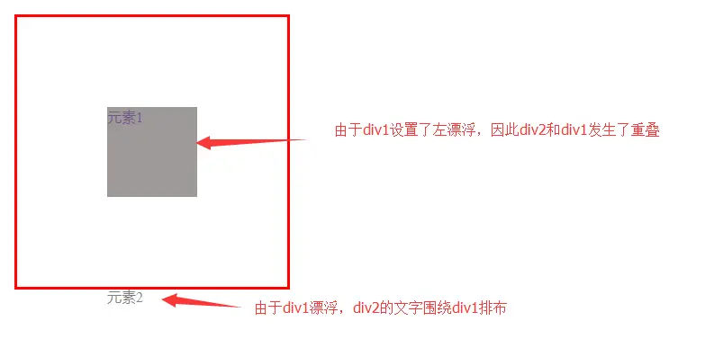 3、由于div1进行了漂浮,而div2与div1处于BFC0中,所以div2和div1还是会发生重叠;