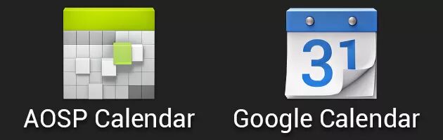 由于这个分裂是最近发生的,两个版本之间还没有太大区别。Google日历会在各设备之间同步通知,并且它会获得一个很酷的新图标。 我觉得AOSP日历就不会获得这些更新。