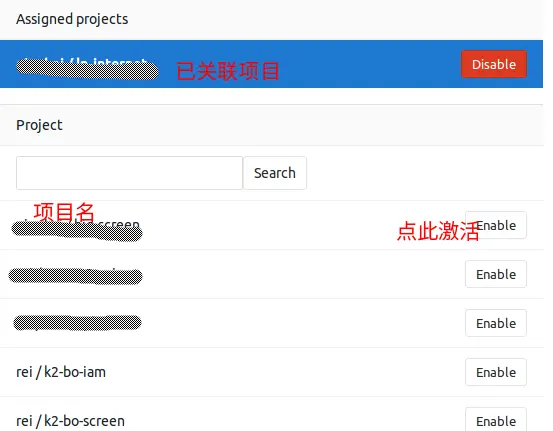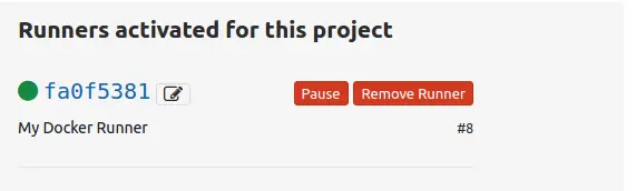 至此, 我们离配置runner还差最后一步:为项目设置runner.进入项目的CI/CD设置界面(Settings => CI/CD => Runners), 找到刚刚关联好的runner, 激活即可.