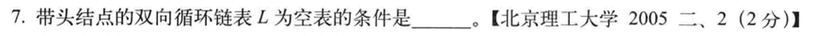 带有头结点的双向循环链表L为空标的条件是: L的next 和 prior都为L