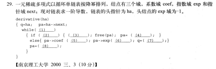 题中说了头结点,就一定有头结点,而且头指针一定指向头结点,头结点是没有数据的,本题为循环链表,有头结点,所以第一个数据从头结点的下一个节点开始,且while循环的终止条件为,当pa != 头结点