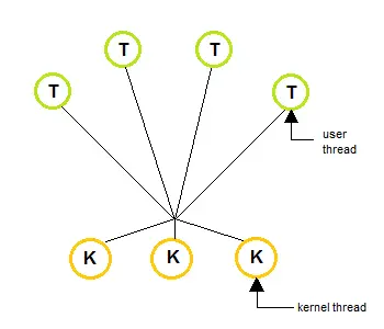 M:N 用户线程和内核线程是多对多的对应关系