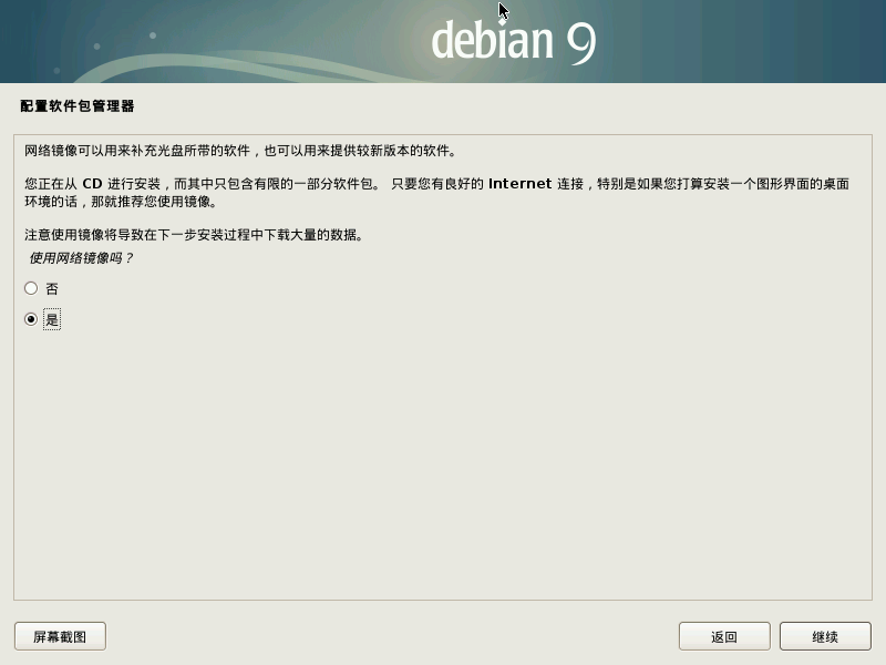 选择使用网络镜像。