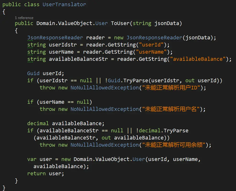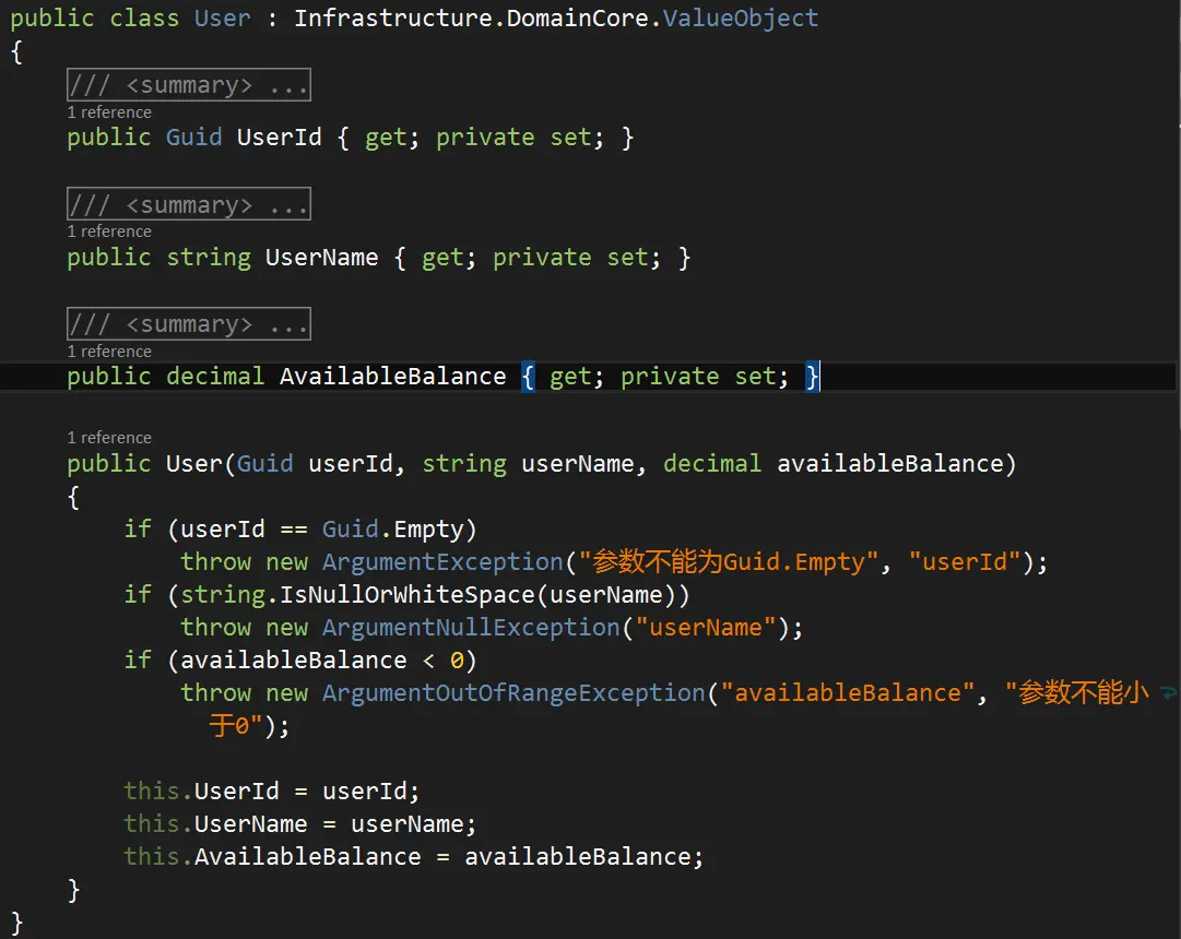 对了,不管是值对象还是实体和聚合,习惯在构造函数中的做好守卫验证,有利于表达出什么样的领域对象是合法的。