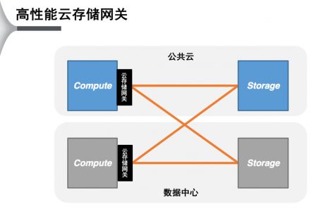 另外,我们经常会遇到的“Cloud Burst”问题,需要云上弹性的计算能力解决云下动态的数据处理需求。这时候线上的计算和线下的存储如何互联,如何保持像线下计算访问线下存储那样的一致的性能行为,是要解决的一个问题。