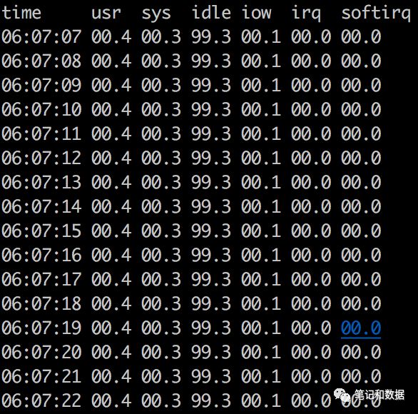 监控linux的cpu使用率,包括user, system, idel, iowait, irq(中断), softirq(软中断) , 数据每秒刷新一次, 这样可以连续观察,避免看top的时候只有当前的数据没有连续的数据的情况。