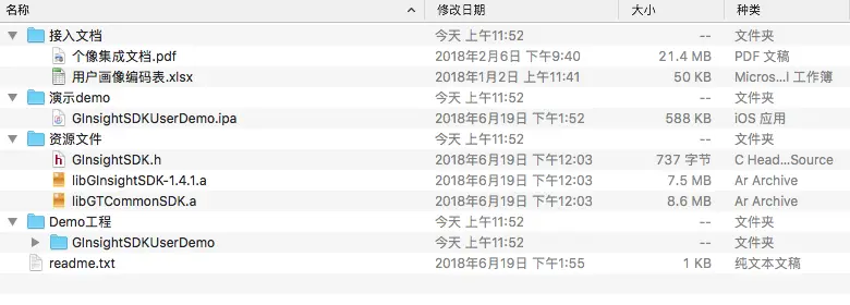 资源文件/ libGInsightSDK-1.4.1.a: 个像SDK主包静态库