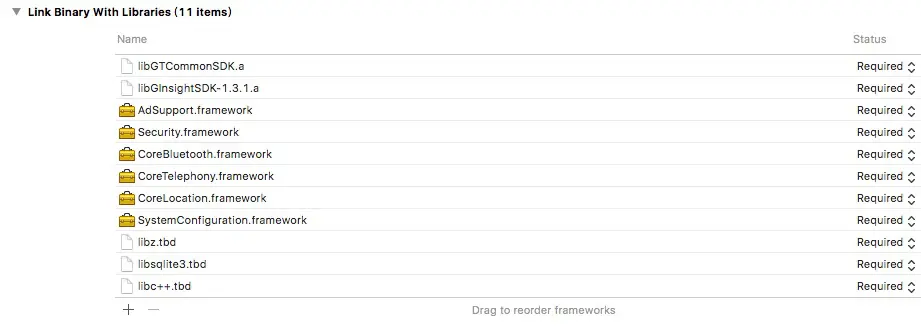 4、注意:libGInsightSDK-1.4.1.a和libGTCommonSDK.a同时支持模拟器和真机。