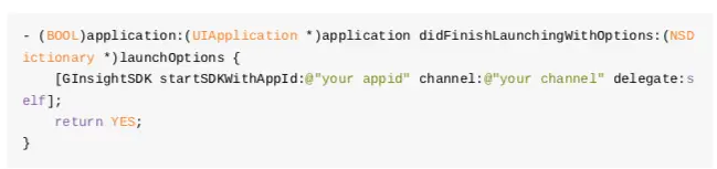 2、在项目工程的AppDelegate.m中添加头文件,使用前面获取的APP ID初始化并启动SDK: