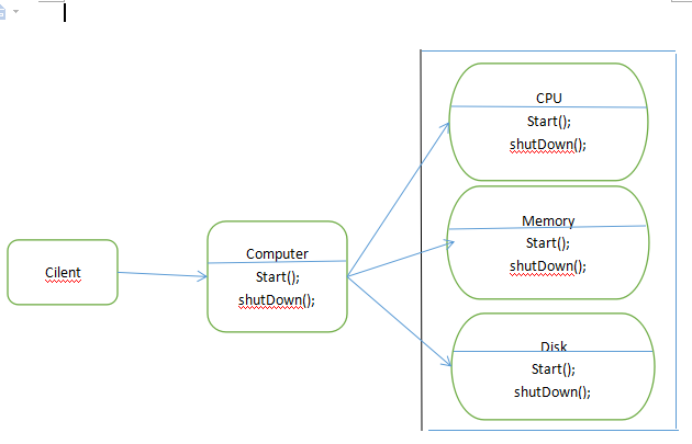 每个Computer都有CPU、Memory、Disk。在Computer开启和关闭的时候,相应的部件也会开启和关闭,所以,使用了该外观模式后,会使用户和部件之间解耦。如: