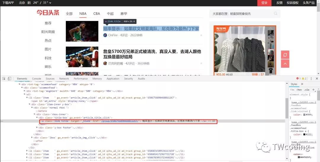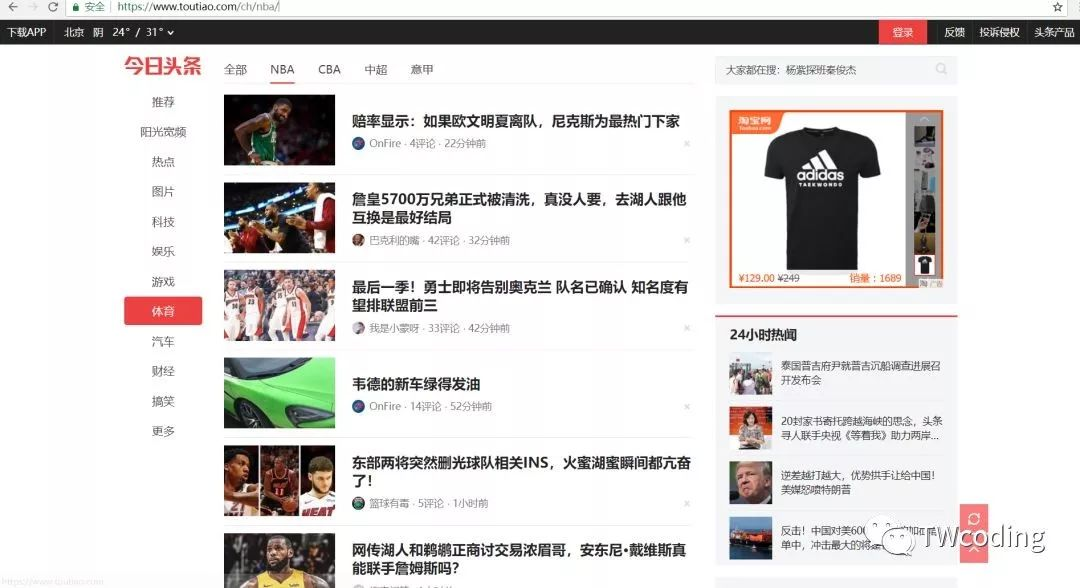 刚刚我们分析了网页的逻辑,那么现在我们就用程序来实现今日头条NBA新闻的抓取吧。