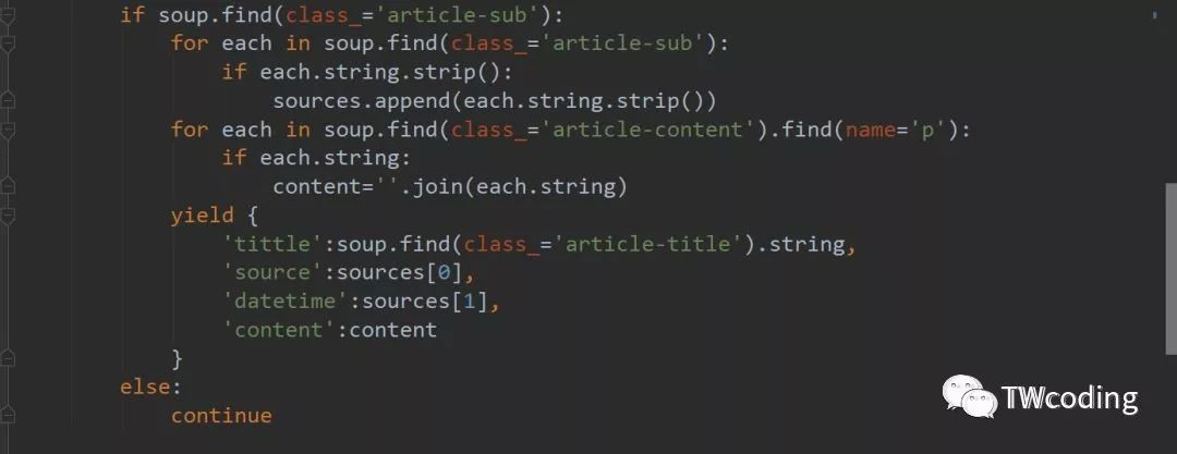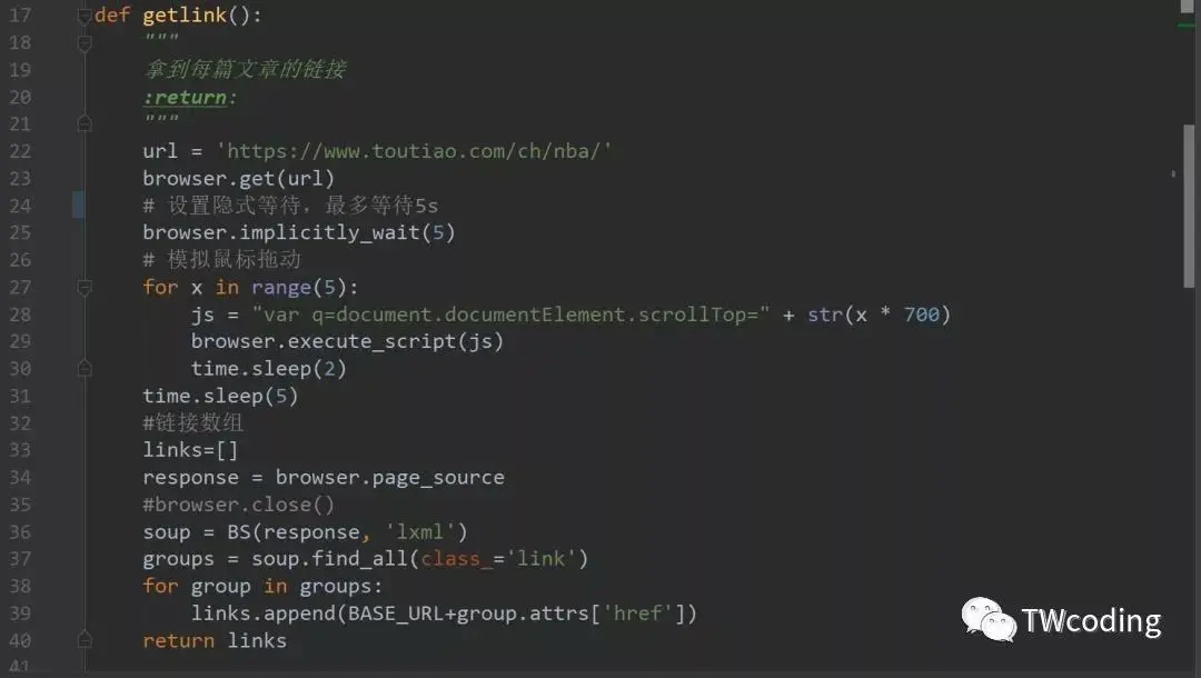如果你对爬虫,数据分析,算法感兴趣。请关注我的微信公众号:TWcoding。我们一起学习。