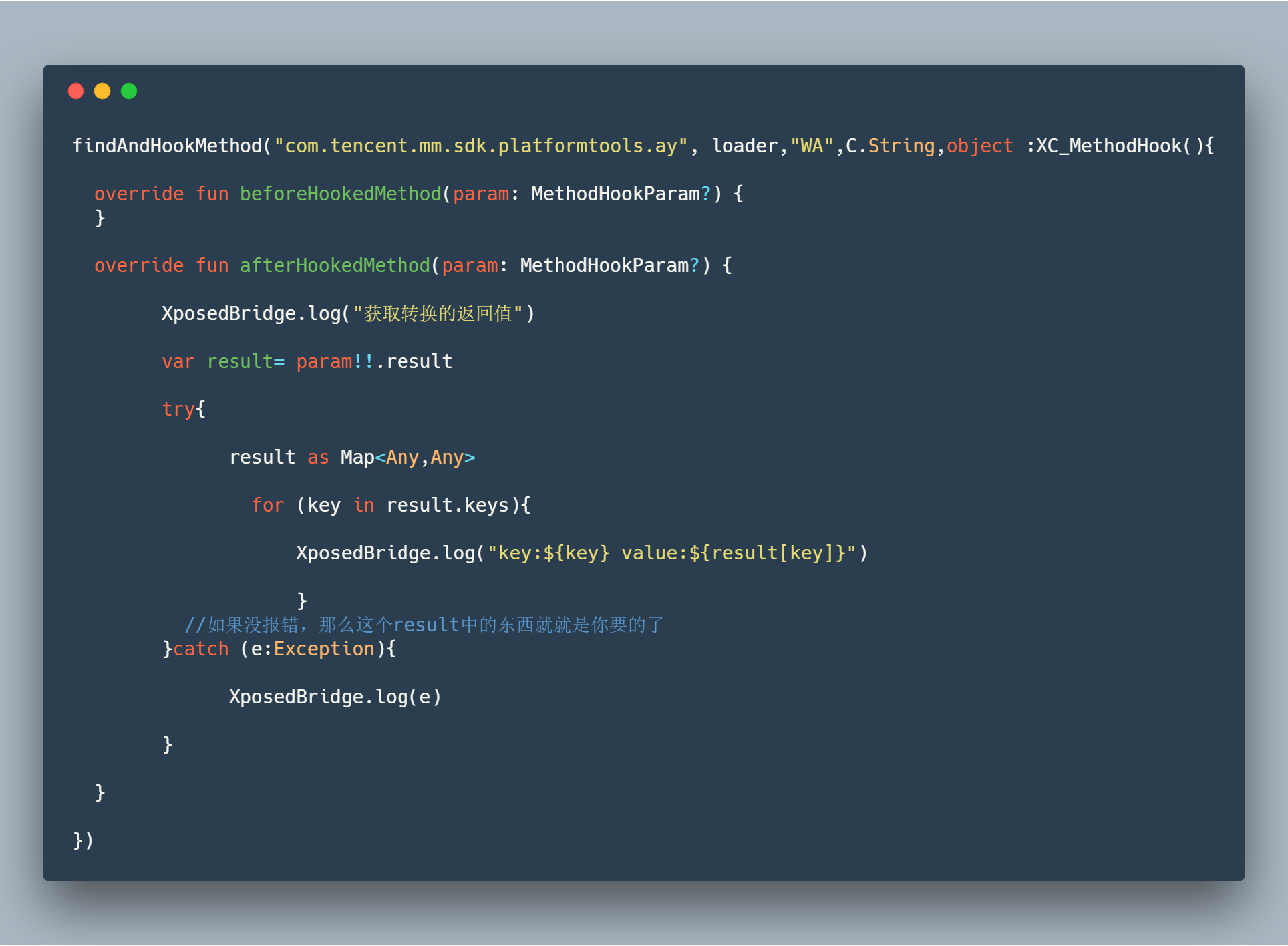 友情提示:阅读本文需要稍微有一点点Xposed开发基础,一点点Android逆向的基础,以及一点点Kotlin基础 鸣谢:@Gh0u1L5,开源的Xposedhook框架----WechatSpellbook,很不错的框架,推荐一波(虽然我用的东西都是基于WechatMagician魔改得到的)。