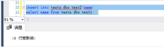 insert into [tests].[dbo].test3(id,name,sex,age,classid) select * from [tests].[dbo].test1;