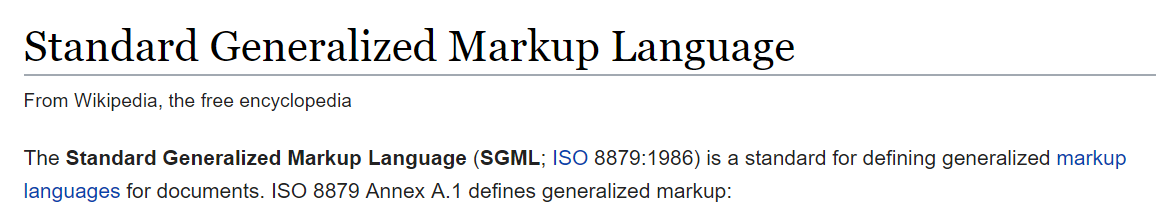翻译一下:SGML,即一般标准标记语言,是一个用于定义文档标记语言标准的集合。