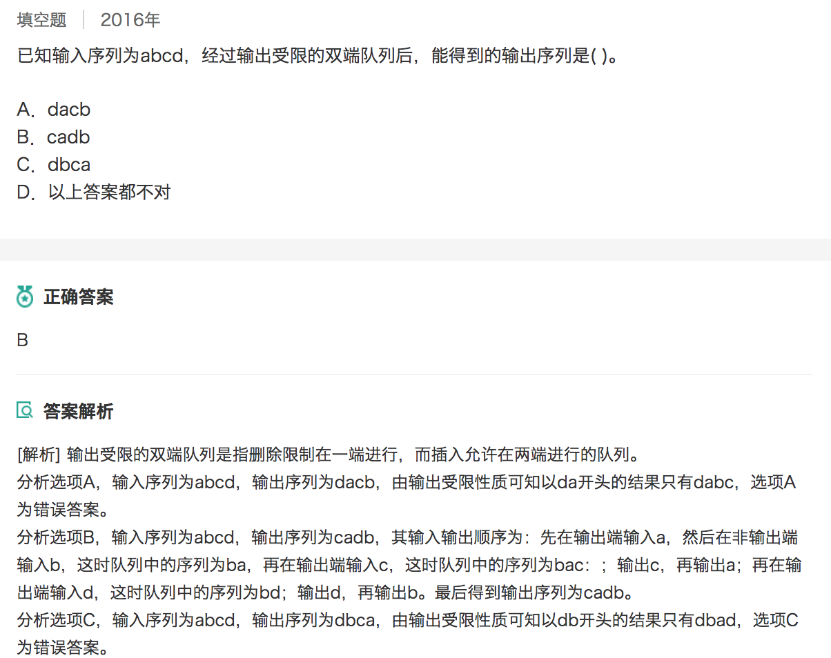 D项是不对的,因为,最早插入的元素,只能被删除一次,之后这个最早插入的元素已经被删除了,无法继续删除