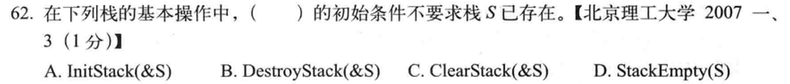 ClearStack(&S):销毁栈,并释放S占用的存储空间