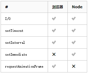 具体支持分类如下: macro-task: setTimeout, setInterval, setImmediate, I/O, UI rendering,mesageChannel micro-task: Promises(这里指浏览器实现的原生 Promise),Object.observe, MutationObserver