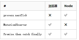 微任务通常来说就是需要在当前 task 执行结束后立即执行的任务,比如对一系列动作做出反馈,或或者是需要异步的执行任务而又不需要分配一个新的 task,这样便可以减小一点性能的开销。只要执行栈中没有其他的js代码正在执行且每个宏任务执行完,微任务队列会立即执行。如果在微任务执行期间微任务队列加入了新的微任务,会将新的微任务加入队列尾部,之后也会被执行。下图为浏览器与node中的微任务。