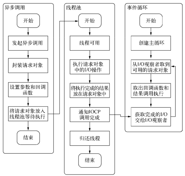 组装好请求对象,送入I/O线程池等待执行,实际上只是完成了异步I/O的第一步;第二步则是异步I/O被线程池处理结束后的回调,也就是执行回调。