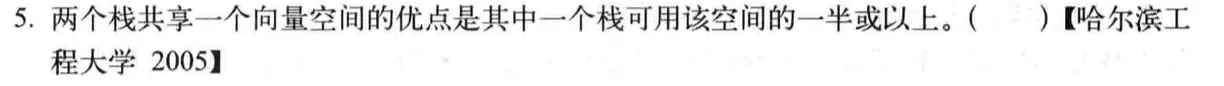 两个栈共享一个向量空间的优点是其中一个栈可以用该空间的一般或者以上(话没错,但是这算是优点吗?从节省存储空间的角度来看,是优点)