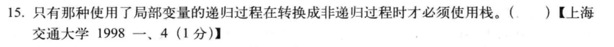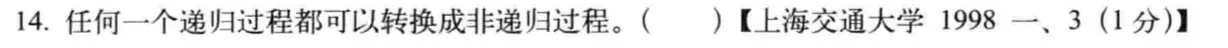 使用普通递归方法求阶乘,没有使用局部变量,也必须使用栈才能将递归转化为非递归