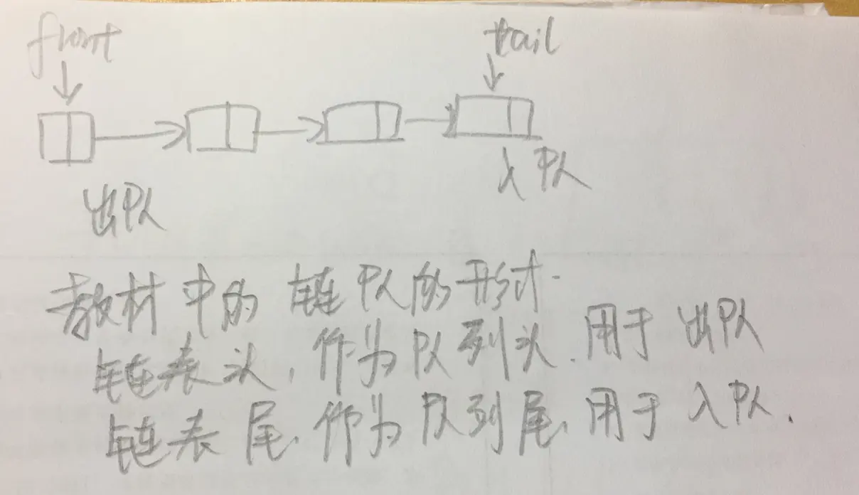 队头也就是链表头,指针可以沿着next移动到队尾,实现对队尾的值的改变