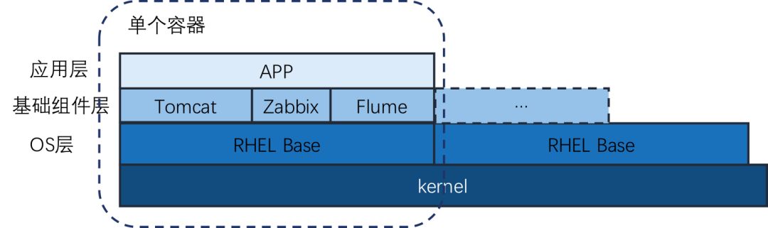 但是考虑到这跟 vmwre 虚拟机在使用和维护上的差异太大,可能会对开发人员、运维人员造成不小的困扰,所以在使用上我们想尽量做跟虚拟机类似,整个镜像也是在 redhat 的发行版的基础上修改,包括 ssh 登陆的支持,各类 agent 进程,各类常用排查命令的支持。