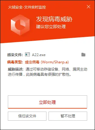 火绒"企业版"和"个人版"最新版均可彻底查杀蠕虫病毒" Worm/Sharp "。同时,政府、企业、学校、医院等受此类病毒威胁较大的局域网用户,我们建议申请安装"火绒企业版",可有效防御局域网内病毒屡杀不绝的难题。目前火绒免费提供三个月试用期,欢迎大家前来体验试用。
