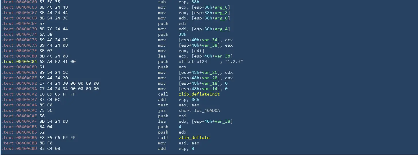 载入的二进制资源经过zlib压缩,zlib版本为1.2.3。解压后可以获得.Net恶意代码。解压缩代码,如下图所示: