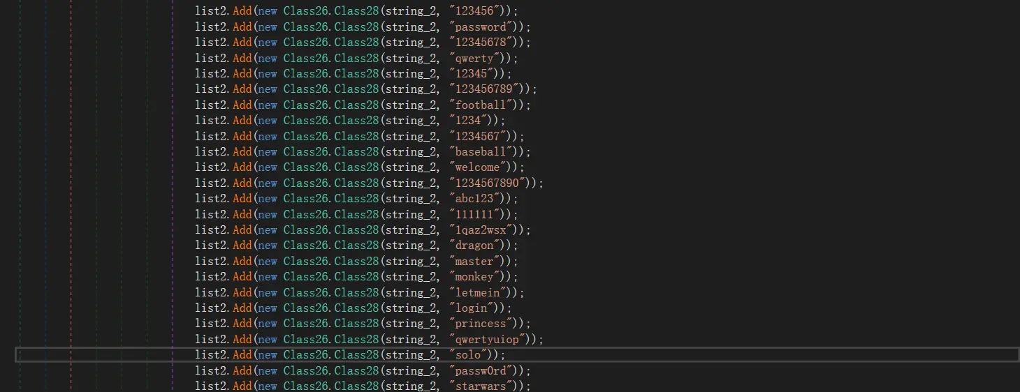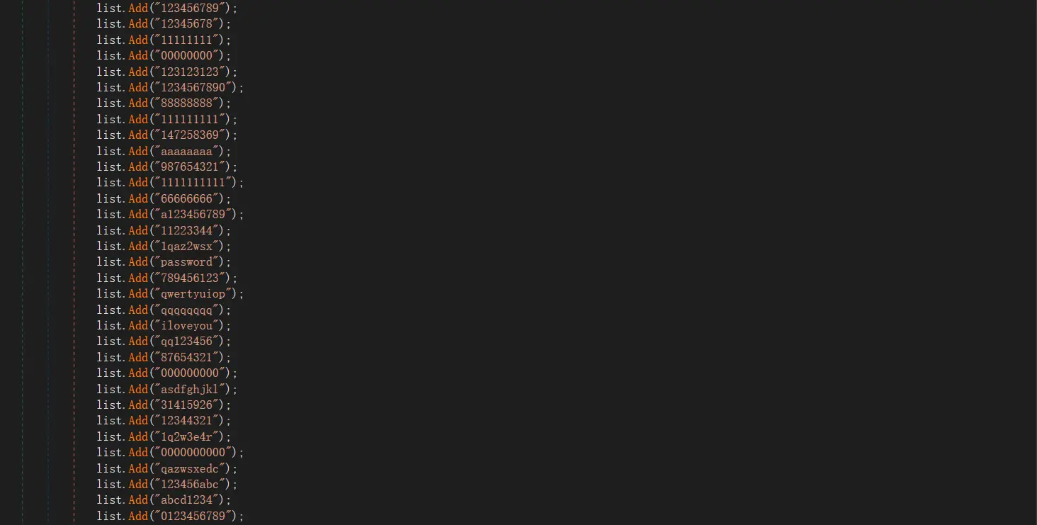 获取被攻击的IP列表功能中已经对FTP的列表进行了扩充,所以在入侵攻击功能中直接开始爆破,内置的字典(部分),如下图所示: