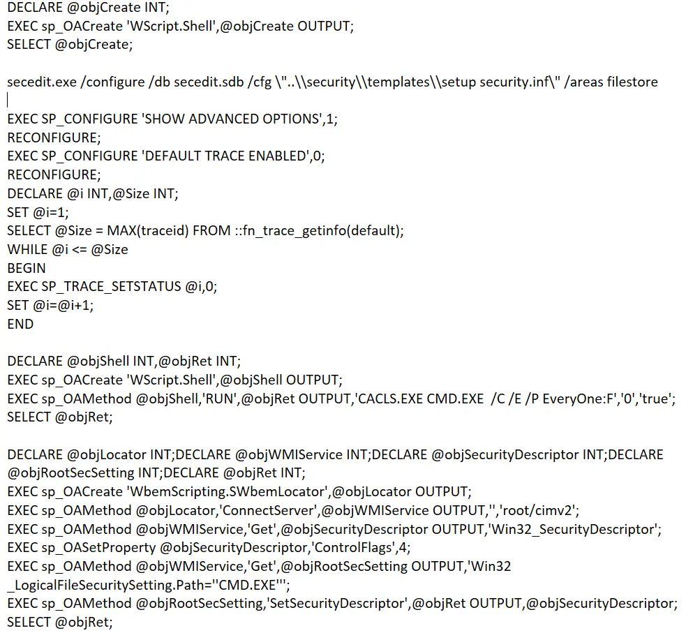 爆破成功的行为除了执行批处理命令之外还会执行脚本和数据库操作,部分脚本如下:
