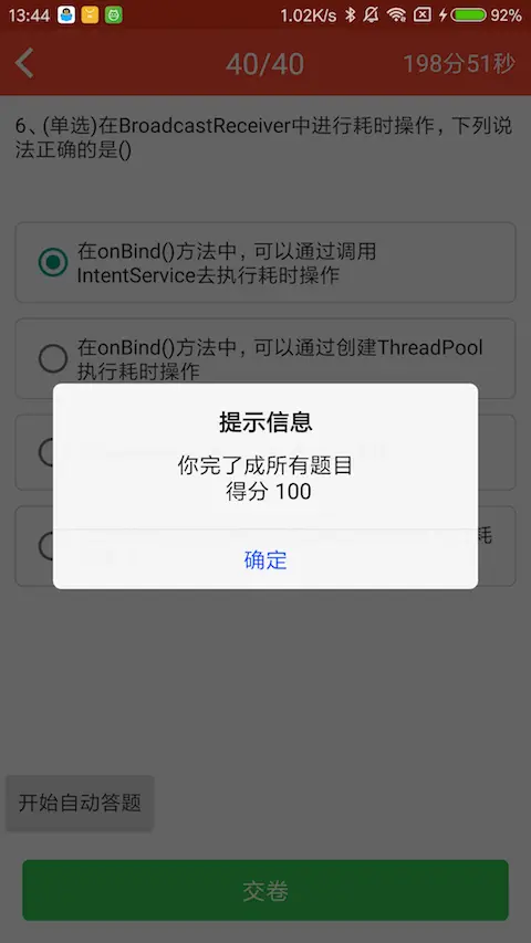 30分钟通过阿里巴巴Android认证考试 若叶丶未白 2018-08-09 1,020 阅读1分钟 原文链接: github.com 提高Alibaba Android技能认证考试通过率 题库整理 2018-06-26 - 2018-07-10 目前收录63道题,其中有部分题目答案可能存在歧义。 建议复习流程:练习 -> 错题 -> 模拟认证,获得90分以上基本上就稳了。 Debug版本下载 APK下载 项目创建 2018-07-20 无限做题模式 2018-08-08 模拟认证模式 2018-08-09 功能截图 其他 题库都是个人收集整理,难免有错 认真做完可以比较容易一次性通过认证考试