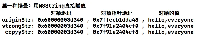NSLog(@"strongStr: %p , %p , %@", _strongStr, &_strongStr, _strongStr);