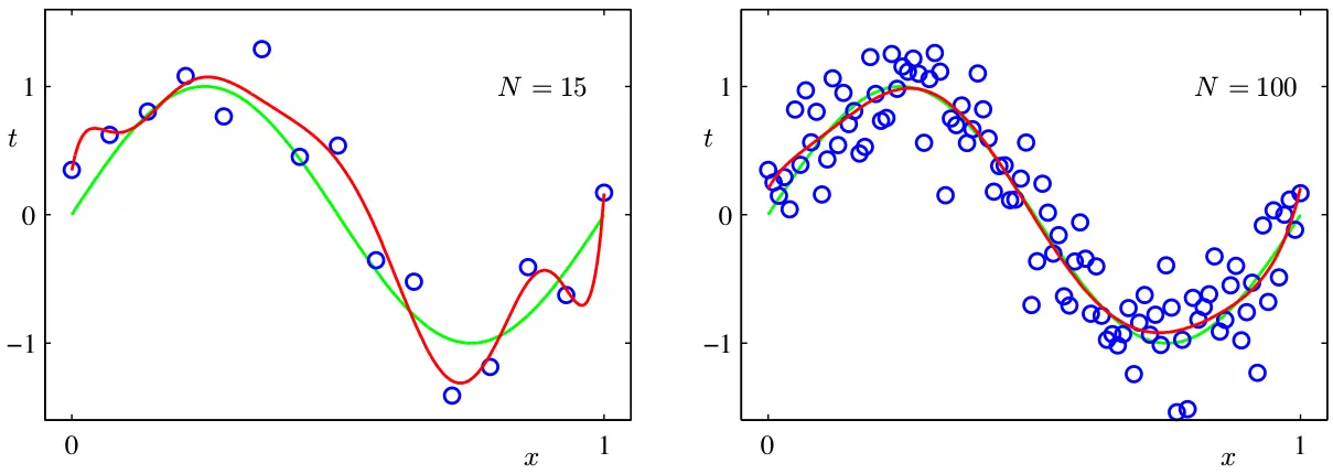 概率论不仅提供了本书后续几乎所有章节的基础,它也能让我们更深刻地理解本章中通过多项式拟合的问题引出的重要概念,并且把这些概念扩展到更复杂的情况。