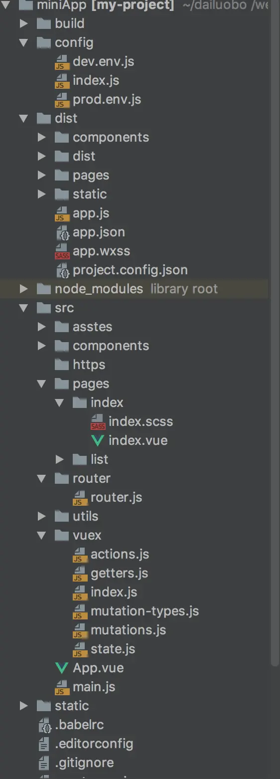 2、将上图中的dist目录拷贝到mpvue项目的输出目录中