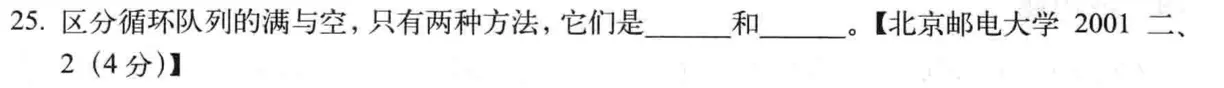 3)类型中增设标志位tag,来区分队满还是队空,tag==0,如果因删除导致Q.front == Q.rear,则为队空,tag==1的情况下,如果因插入导致Q.front == Q.rear则为队满
