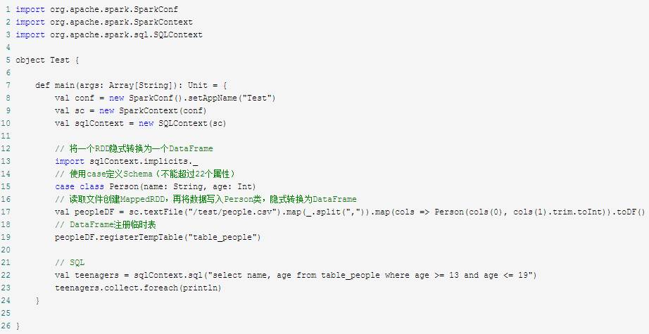 Spark SQL支持根据Parquet文件自描述自动推断Schema,生成DataFrame。