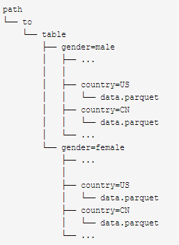 示例:有一个分区列为gender和country的分区表,加载路径“/path/to/table”可自动提取分区信息
