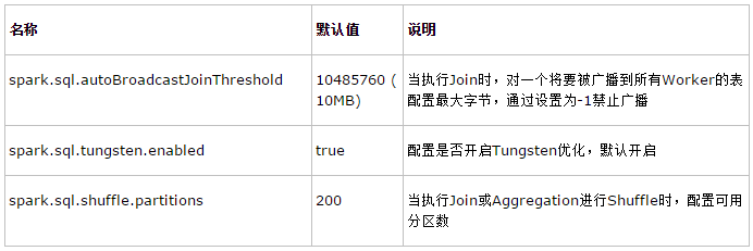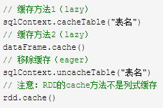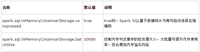 内存列式缓存:内存列式(in-memory columnar format)缓存(再次执行时无需重复读取),仅扫描需要的列,并自动调整压缩比使内存使用率和GC压力最小化。