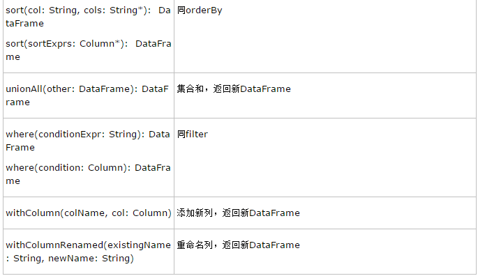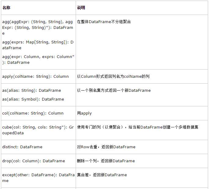 DataFrame本质是一个拥有多个分区的RDD,支持RDD Operation:coalesce、flatMap、foreach、foreachPartition、javaRDD、map、mapPartitions、repartition、toJSON、toJavaRDD等。