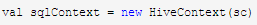 操作Hive数据源须创建SQLContext的子类HiveContext对象。