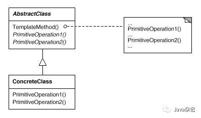 定义一个操作中的算法的骨架,而将一些步骤延迟到子类中。Template Method使得子类可以不改变一个算法的结构即可重定义该算法的某些特定步骤。