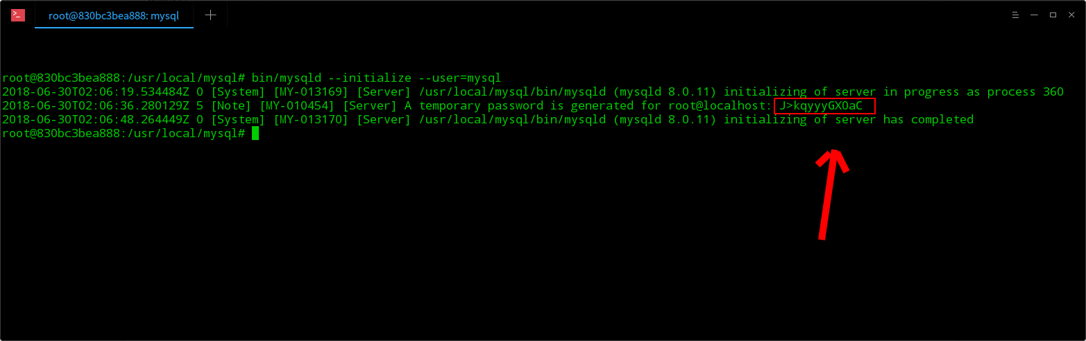 可以看到系统随机给root用户分配了一个密码,如图所示,这个密码要记住,想要自定义过后可以再改