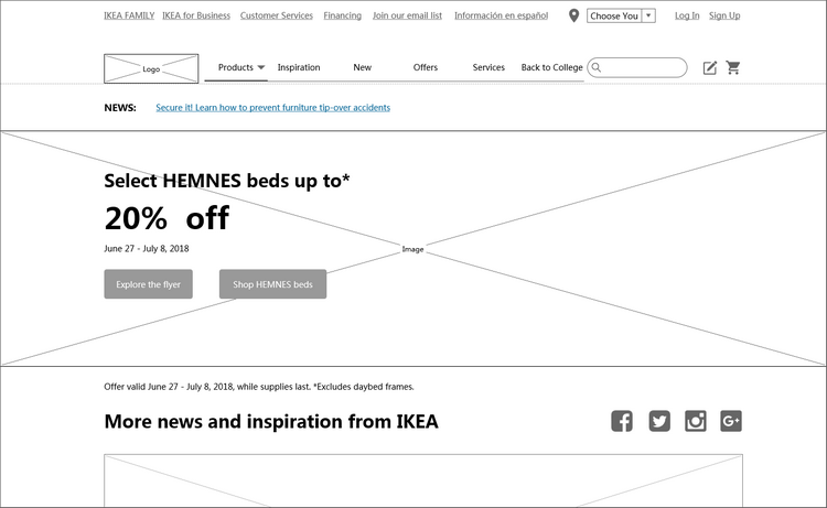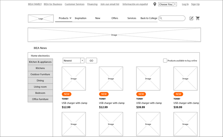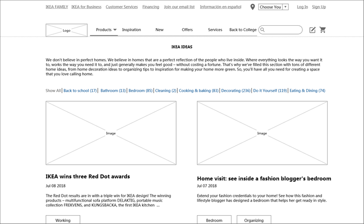 IKEA是一个家居整合大型零售商,属于电商类官网。电商以展示商品、售后服务、购物流程为主。根据网站的图文方式排版,主导航栏使用的标签组,区域导航栏使用的是垂直选项卡,实现下拉弹出面板交互的功能。