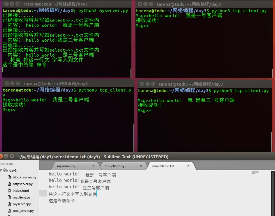 应用 : select服务端,同时关注客户端连接 客户端发送和终端输入。将客户端发送和终端输入的内容全都写入到一个文件中