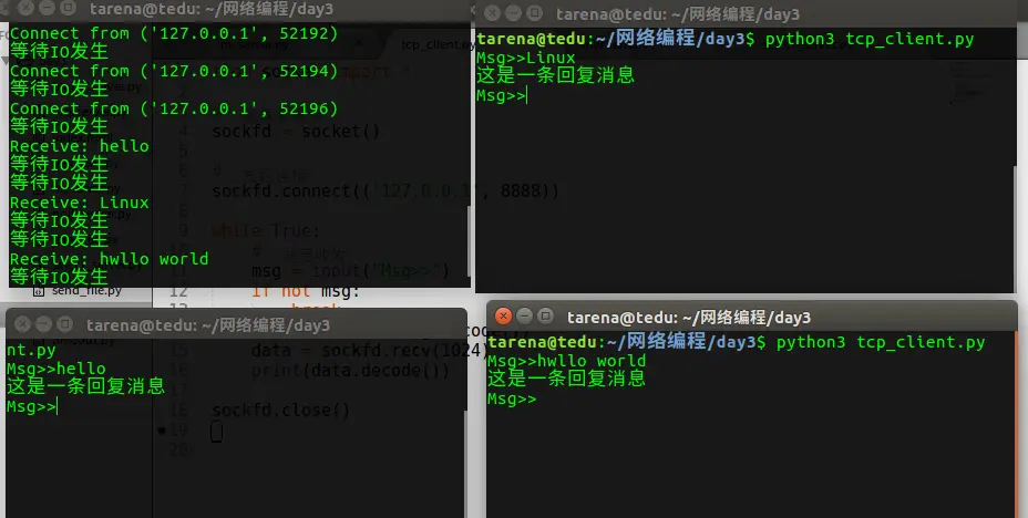 # 客户端发送和终端输入。将客户端发送和终端输入的内容全都写入到一个文件中